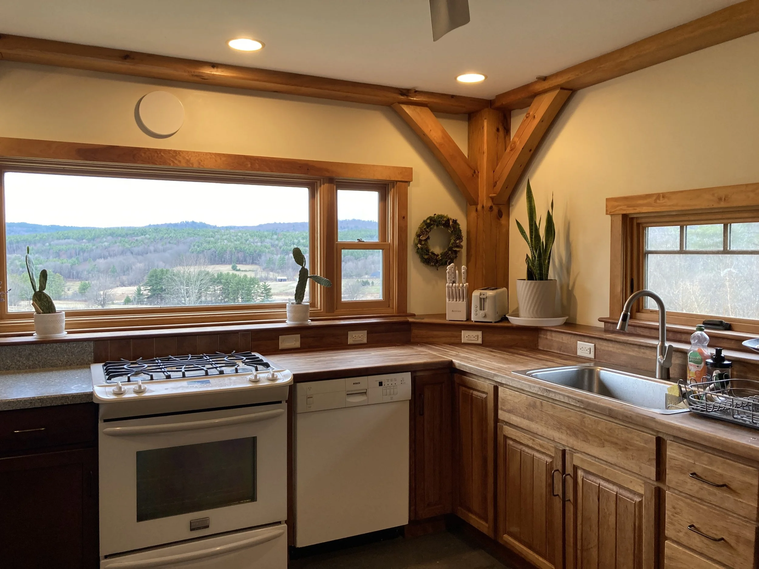 The house has amazing views from all the shared spaces, great outdoor spaces with access to meandering farm trails, 4 bedrooms, a designated workspace, 2.5 bathrooms and cozy living and dining spaces.